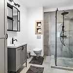 - ❓Какие удобства предусмотрели в ванной комнате в этой квартире?В этой квартире есть ванные комнаты, укомплектованные банными полотенцами и тапочками.